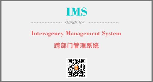 英文缩略词“IMS”经常作为“Interagency Management System”的英文缩写来使用,中文表示:“跨部门管理系统”。本文将详细介绍英文缩写词IMS所代表英文单词,其对应的中文拼音、详细解释以及在英语中的流行度。此外,还有关于缩略词IMS的分类、应用领域及相关应用示例等。