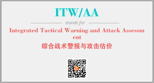 英文缩略词“ITW/AA”经常作为“Integrated Tactical Warning and Attack Assessment”的英文缩写来使用,中文表示:“综合战术警报与攻击估价”。本文将详细介绍英文缩写词ITW/AA所代表英文单词,其对应的中文拼音、详细解释以及在英语中的流行度。此外,还有关于缩略词ITW/AA的分类、应用领域及相关应用示例等。