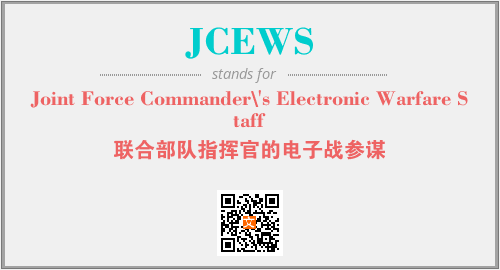 上述内容是“Joint Force Commander\'s Electronic Warfare Staff”作为“JCEWS”的缩写,解释为“联合部队指挥官的电子战参谋”时的信息,以及英文缩略词JCEWS所代表的英文单词,其对应的中文拼音、详细解释以及在英文中的流行度和相关分类、应用领域及应用示例等。