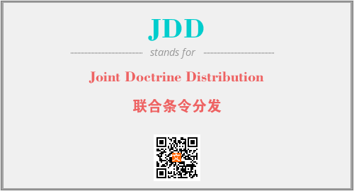 英文缩略词“JDD”经常作为“Joint Doctrine Distribution”的英文缩写来使用,中文表示:“联合条令分发”。本文将详细介绍英文缩写词JDD所代表英文单词,其对应的中文拼音、详细解释以及在英语中的流行度。此外,还有关于缩略词JDD的分类、应用领域及相关应用示例等。