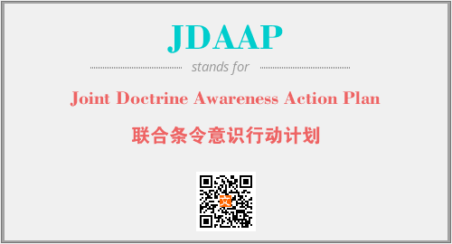 上述内容是“Joint Doctrine Awareness Action Plan”作为“JDAAP”的缩写,解释为“联合条令意识行动计划”时的信息,以及英文缩略词JDAAP所代表的英文单词,其对应的中文拼音、详细解释以及在英文中的流行度和相关分类、应用领域及应用示例等。