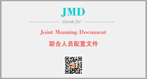 英文缩略词“JMD”经常作为“Joint Manning Document”的英文缩写来使用,中文表示:“联合人员配置文件”。本文将详细介绍英文缩写词JMD所代表英文单词,其对应的中文拼音、详细解释以及在英语中的流行度。此外,还有关于缩略词JMD的分类、应用领域及相关应用示例等。