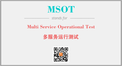 英文缩略词“MSOT”经常作为“Multi Service Operational Test”的英文缩写来使用,中文表示:“多服务运行测试”。本文将详细介绍英文缩写词MSOT所代表英文单词,其对应的中文拼音、详细解释以及在英语中的流行度。此外,还有关于缩略词MSOT的分类、应用领域及相关应用示例等。