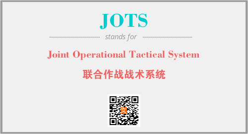 英文缩略词“JOTS”经常作为“Joint Operational Tactical System”的英文缩写来使用,中文表示:“联合作战战术系统”。本文将详细介绍英文缩写词JOTS所代表英文单词,其对应的中文拼音、详细解释以及在英语中的流行度。此外,还有关于缩略词JOTS的分类、应用领域及相关应用示例等。