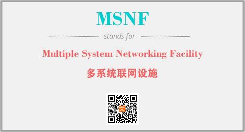 英文缩略词“MSNF”经常作为“Multiple System Networking Facility”的英文缩写来使用,中文表示:“多系统联网设施”。本文将详细介绍英文缩写词MSNF所代表英文单词,其对应的中文拼音、详细解释以及在英语中的流行度。此外,还有关于缩略词MSNF的分类、应用领域及相关应用示例等。