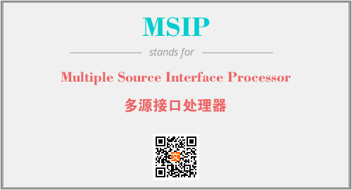 英文缩略词“MSIP”经常作为“Multiple Source Interface Processor”的英文缩写来使用,中文表示:“多源接口处理器”。本文将详细介绍英文缩写词MSIP所代表英文单词,其对应的中文拼音、详细解释以及在英语中的流行度。此外,还有关于缩略词MSIP的分类、应用领域及相关应用示例等。