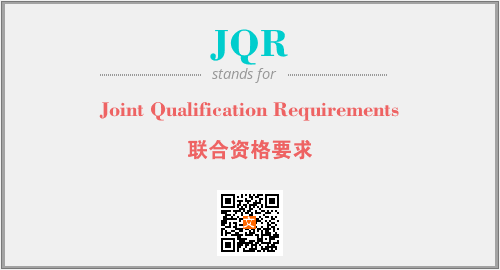 上述内容是“Joint Qualification Requirements”作为“JQR”的缩写,解释为“联合资格要求”时的信息,以及英文缩略词JQR所代表的英文单词,其对应的中文拼音、详细解释以及在英文中的流行度和相关分类、应用领域及应用示例等。