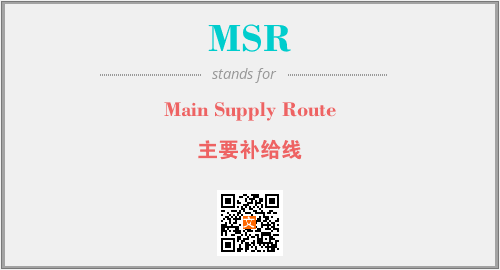 英文缩略词“MSR”经常作为“Main Supply Route”的英文缩写来使用,中文表示:“主要补给线”。本文将详细介绍英文缩写词MSR所代表英文单词,其对应的中文拼音、详细解释以及在英语中的流行度。此外,还有关于缩略词MSR的分类、应用领域及相关应用示例等。