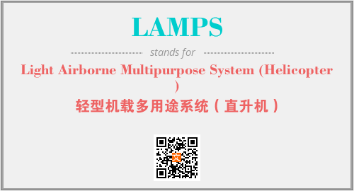 上述内容是“Light Airborne Multipurpose System (Helicopter)”作为“LAMPS”的缩写,解释为“轻型机载多用途系统(直升机)”时的信息,以及英文缩略词LAMPS所代表的英文单词,其对应的中文拼音、详细解释以及在英文中的流行度和相关分类、应用领域及应用示例等。