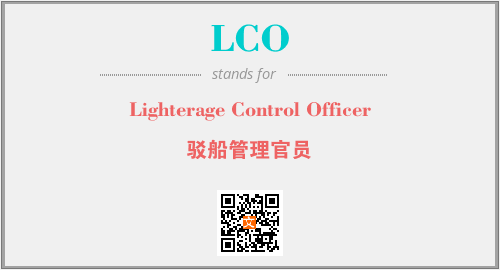 英文缩略词“LCO”经常作为“Lighterage Control Officer”的英文缩写来使用,中文表示:“驳船管理官员”。本文将详细介绍英文缩写词LCO所代表英文单词,其对应的中文拼音、详细解释以及在英语中的流行度。此外,还有关于缩略词LCO的分类、应用领域及相关应用示例等。
