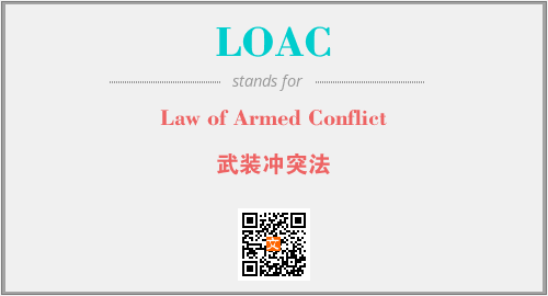 英文缩略词“LOAC”经常作为“Law of Armed Conflict”的英文缩写来使用,中文表示:“武装冲突法”。本文将详细介绍英文缩写词LOAC所代表英文单词,其对应的中文拼音、详细解释以及在英语中的流行度。此外,还有关于缩略词LOAC的分类、应用领域及相关应用示例等。
