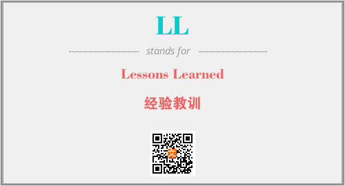 英文缩略词“LL”经常作为“Lessons Learned”的英文缩写来使用,中文表示:“经验教训”。本文将详细介绍英文缩写词LL所代表英文单词,其对应的中文拼音、详细解释以及在英语中的流行度。此外,还有关于缩略词LL的分类、应用领域及相关应用示例等。
