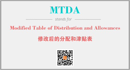 以上为Modified Table of Distribution and Allowances英文缩略词MTDA的中文解释,以及该英文缩写在英语的流行度、分类和应用领域方面的信息。