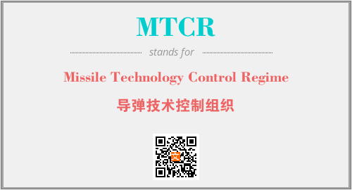 上述内容是“Missile Technology Control Regime”作为“MTCR”的缩写,解释为“导弹技术控制组织”时的信息,以及英文缩略词MTCR所代表的英文单词,其对应的中文拼音、详细解释以及在英文中的流行度和相关分类、应用领域及应用示例等。