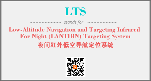 上述内容是“Low-Altitude Navigation and Targeting Infrared For Night (LANTIRN) Targeting System”作为“LTS”的缩写,解释为“夜间红外低空导航定位系统”时的信息,以及英文缩略词LTS所代表的英文单词,其对应的中文拼音、详细解释以及在英文中的流行度和相关分类、应用领域及应用示例等。