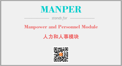 英文缩略词“MANPER”经常作为“Manpower and Personnel Module”的英文缩写来使用,中文表示:“人力和人事模块”。本文将详细介绍英文缩写词MANPER所代表英文单词,其对应的中文拼音、详细解释以及在英语中的流行度。此外,还有关于缩略词MANPER的分类、应用领域及相关应用示例等。