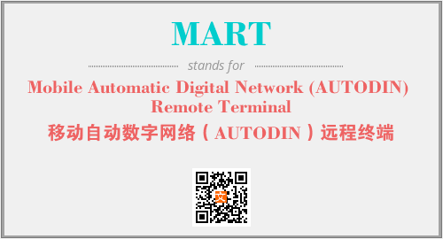 上述内容是“Mobile Automatic Digital Network (AUTODIN) Remote Terminal”作为“MART”的缩写,解释为“移动自动数字网络(AUTODIN)远程终端”时的信息,以及英文缩略词MART所代表的英文单词,其对应的中文拼音、详细解释以及在英文中的流行度和相关分类、应用领域及应用示例等。