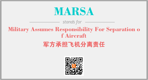 上述内容是“Military Assumes Responsibility For Separation of Aircraft”作为“MARSA”的缩写,解释为“军方承担飞机分离责任”时的信息,以及英文缩略词MARSA所代表的英文单词,其对应的中文拼音、详细解释以及在英文中的流行度和相关分类、应用领域及应用示例等。