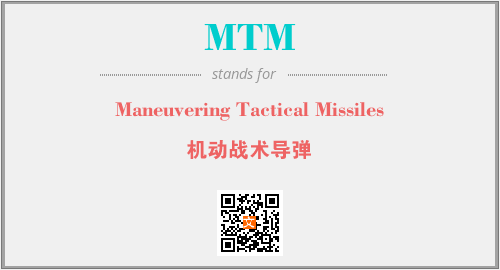 英文缩略词“MTM”经常作为“Maneuvering Tactical Missiles”的英文缩写来使用,中文表示:“机动战术导弹”。本文将详细介绍英文缩写词MTM所代表英文单词,其对应的中文拼音、详细解释以及在英语中的流行度。此外,还有关于缩略词MTM的分类、应用领域及相关应用示例等。