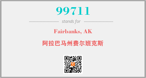 上述内容是“Fairbanks, AK”作为“99711”的缩写,解释为“阿拉巴马州费尔班克斯”时的信息,以及英文缩略词99711所代表的英文单词,其对应的中文拼音、详细解释以及在英文中的流行度和相关分类、应用领域及应用示例等。