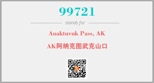 上述内容是“Anaktuvuk Pass, AK”作为“99721”的缩写,解释为“AK阿纳克图武克山口”时的信息,以及英文缩略词99721所代表的英文单词,其对应的中文拼音、详细解释以及在英文中的流行度和相关分类、应用领域及应用示例等。
