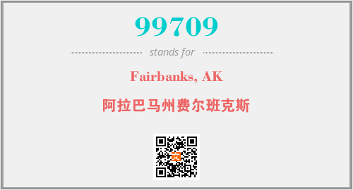 上述内容是“Fairbanks, AK”作为“99709”的缩写,解释为“阿拉巴马州费尔班克斯”时的信息,以及英文缩略词99709所代表的英文单词,其对应的中文拼音、详细解释以及在英文中的流行度和相关分类、应用领域及应用示例等。