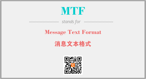 英文缩略词“MTF”经常作为“Message Text Format”的英文缩写来使用,中文表示:“消息文本格式”。本文将详细介绍英文缩写词MTF所代表英文单词,其对应的中文拼音、详细解释以及在英语中的流行度。此外,还有关于缩略词MTF的分类、应用领域及相关应用示例等。