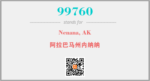 上述内容是“Nenana, AK”作为“99760”的缩写,解释为“阿拉巴马州内纳纳”时的信息,以及英文缩略词99760所代表的英文单词,其对应的中文拼音、详细解释以及在英文中的流行度和相关分类、应用领域及应用示例等。