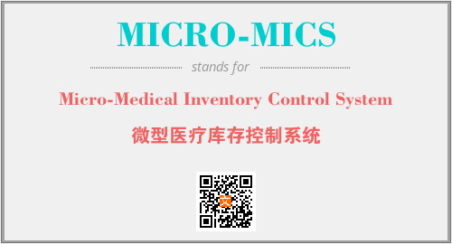 英文缩略词“MICRO-MICS”经常作为“Micro-Medical Inventory Control System”的英文缩写来使用,中文表示:“微型医疗库存控制系统”。本文将详细介绍英文缩写词MICRO-MICS所代表英文单词,其对应的中文拼音、详细解释以及在英语中的流行度。此外,还有关于缩略词MICRO-MICS的分类、应用领域及相关应用示例等。