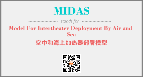 上述内容是“Model For Intertheater Deployment By Air and Sea”作为“MIDAS”的缩写,解释为“空中和海上加热器部署模型”时的信息,以及英文缩略词MIDAS所代表的英文单词,其对应的中文拼音、详细解释以及在英文中的流行度和相关分类、应用领域及应用示例等。