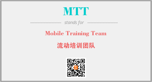 英文缩略词“MTT”经常作为“Mobile Training Team”的英文缩写来使用,中文表示:“流动培训团队”。本文将详细介绍英文缩写词MTT所代表英文单词,其对应的中文拼音、详细解释以及在英语中的流行度。此外,还有关于缩略词MTT的分类、应用领域及相关应用示例等。