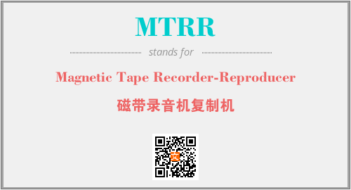 英文缩略词“MTRR”经常作为“Magnetic Tape Recorder-Reproducer”的英文缩写来使用,中文表示:“磁带录音机复制机”。本文将详细介绍英文缩写词MTRR所代表英文单词,其对应的中文拼音、详细解释以及在英语中的流行度。此外,还有关于缩略词MTRR的分类、应用领域及相关应用示例等。