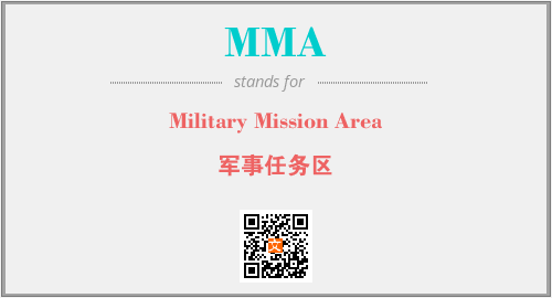 英文缩略词“MMA”经常作为“Military Mission Area”的英文缩写来使用,中文表示:“军事任务区”。本文将详细介绍英文缩写词MMA所代表英文单词,其对应的中文拼音、详细解释以及在英语中的流行度。此外,还有关于缩略词MMA的分类、应用领域及相关应用示例等。