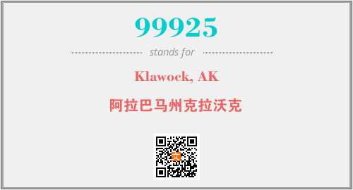 上述内容是“Klawock, AK”作为“99925”的缩写,解释为“阿拉巴马州克拉沃克”时的信息,以及英文缩略词99925所代表的英文单词,其对应的中文拼音、详细解释以及在英文中的流行度和相关分类、应用领域及应用示例等。