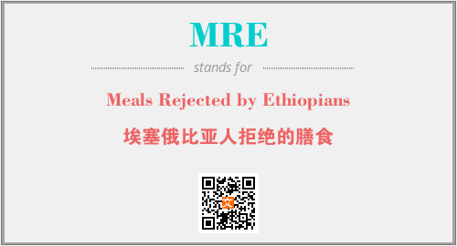 以上为Meals Rejected by Ethiopians英文缩略词MRE的中文解释,以及该英文缩写在英语的流行度、分类和应用领域方面的信息。