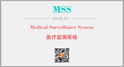 上述内容是“Medical Surveillance System”作为“MSS”的缩写,解释为“医疗监测系统”时的信息,以及英文缩略词MSS所代表的英文单词,其对应的中文拼音、详细解释以及在英文中的流行度和相关分类、应用领域及应用示例等。