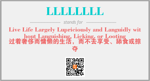 上述内容是“Live Life Largely Lupriciously and Languidly without Languishing, Licking, or Looting”作为“LLLLLLLL”的缩写,解释为“过着奢侈而慵懒的生活,而不去享受、舔食或掠夺”时的信息,以及英文缩略词LLLLLLLL所代表的英文单词,其对应的中文拼音、详细解释以及在英文中的流行度和相关分类、应用领域及应用示例等。