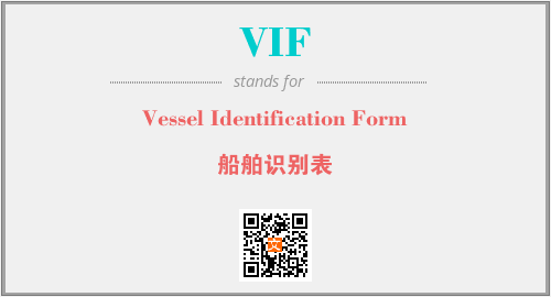 上述内容是“Vessel Identification Form”作为“VIF”的缩写,解释为“船舶识别表”时的信息,以及英文缩略词VIF所代表的英文单词,其对应的中文拼音、详细解释以及在英文中的流行度和相关分类、应用领域及应用示例等。