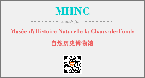 上述内容是“Musée d\'Histoire Naturelle la Chaux-de-Fonds”作为“MHNC”的缩写,解释为“自然历史博物馆”时的信息,以及英文缩略词MHNC所代表的英文单词,其对应的中文拼音、详细解释以及在英文中的流行度和相关分类、应用领域及应用示例等。