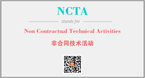 以上为Non Contractual Technical Activities英文缩略词NCTA的中文解释,以及该英文缩写在英语的流行度、分类和应用领域方面的信息。