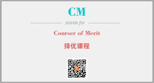 上述内容是“Courser of Merit”作为“CM”的缩写,解释为“择优课程”时的信息,以及英文缩略词CM所代表的英文单词,其对应的中文拼音、详细解释以及在英文中的流行度和相关分类、应用领域及应用示例等。