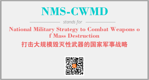 上述内容是“National Military Strategy to Combat Weapons of Mass Destruction”作为“NMS-CWMD”的缩写,解释为“打击大规模毁灭性武器的国家军事战略”时的信息,以及英文缩略词NMS-CWMD所代表的英文单词,其对应的中文拼音、详细解释以及在英文中的流行度和相关分类、应用领域及应用示例等。