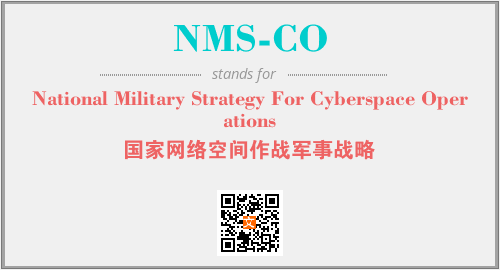 上述内容是“National Military Strategy For Cyberspace Operations”作为“NMS-CO”的缩写,解释为“国家网络空间作战军事战略”时的信息,以及英文缩略词NMS-CO所代表的英文单词,其对应的中文拼音、详细解释以及在英文中的流行度和相关分类、应用领域及应用示例等。