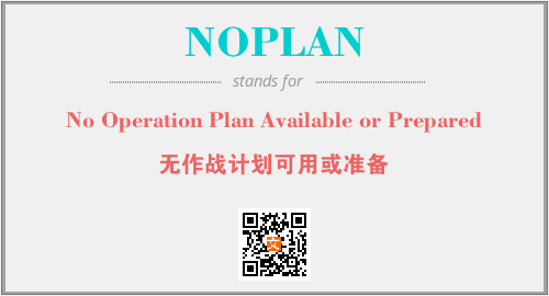 以上为No Operation Plan Available or Prepared英文缩略词NOPLAN的中文解释,以及该英文缩写在英语的流行度、分类和应用领域方面的信息。