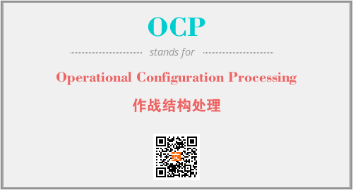 英文缩略词“OCP”经常作为“Operational Configuration Processing”的英文缩写来使用,中文表示:“作战结构处理”。本文将详细介绍英文缩写词OCP所代表英文单词,其对应的中文拼音、详细解释以及在英语中的流行度。此外,还有关于缩略词OCP的分类、应用领域及相关应用示例等。