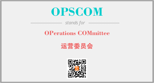 英文缩略词“OPSCOM”经常作为“OPerations COMmittee”的英文缩写来使用,中文表示:“运营委员会”。本文将详细介绍英文缩写词OPSCOM所代表英文单词,其对应的中文拼音、详细解释以及在英语中的流行度。此外,还有关于缩略词OPSCOM的分类、应用领域及相关应用示例等。