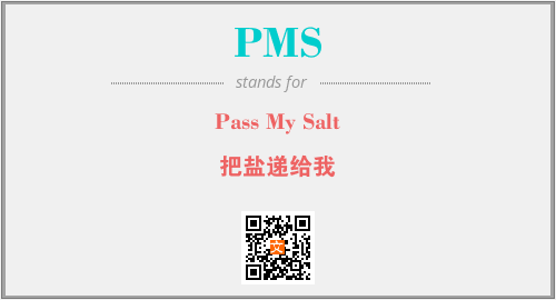 英文缩略词“PMS”经常作为“Pass My Salt”的英文缩写来使用,中文表示:“把盐递给我”。本文将详细介绍英文缩写词PMS所代表英文单词,其对应的中文拼音、详细解释以及在英语中的流行度。此外,还有关于缩略词PMS的分类、应用领域及相关应用示例等。