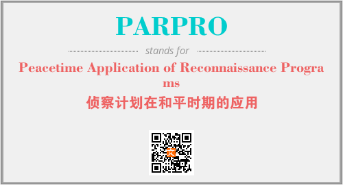 上述内容是“Peacetime Application of Reconnaissance Programs”作为“PARPRO”的缩写,解释为“侦察计划在和平时期的应用”时的信息,以及英文缩略词PARPRO所代表的英文单词,其对应的中文拼音、详细解释以及在英文中的流行度和相关分类、应用领域及应用示例等。