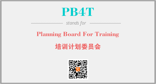 英文缩略词“PB4T”经常作为“Planning Board For Training”的英文缩写来使用,中文表示:“培训计划委员会”。本文将详细介绍英文缩写词PB4T所代表英文单词,其对应的中文拼音、详细解释以及在英语中的流行度。此外,还有关于缩略词PB4T的分类、应用领域及相关应用示例等。