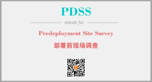 上述内容是“Predeployment Site Survey”作为“PDSS”的缩写,解释为“部署前现场调查”时的信息,以及英文缩略词PDSS所代表的英文单词,其对应的中文拼音、详细解释以及在英文中的流行度和相关分类、应用领域及应用示例等。